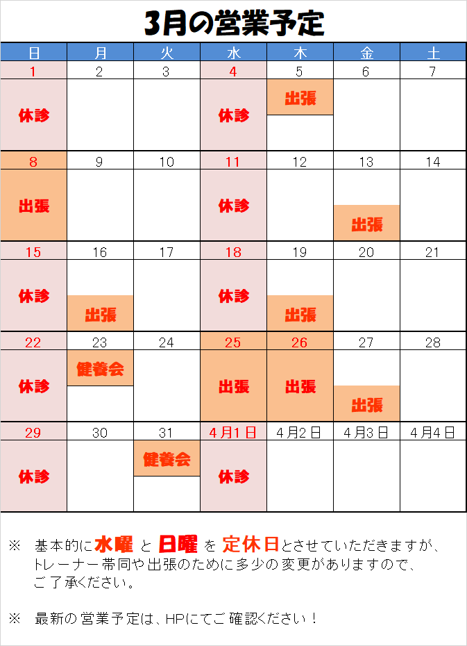 3月は、下記の日程が休診日となります。